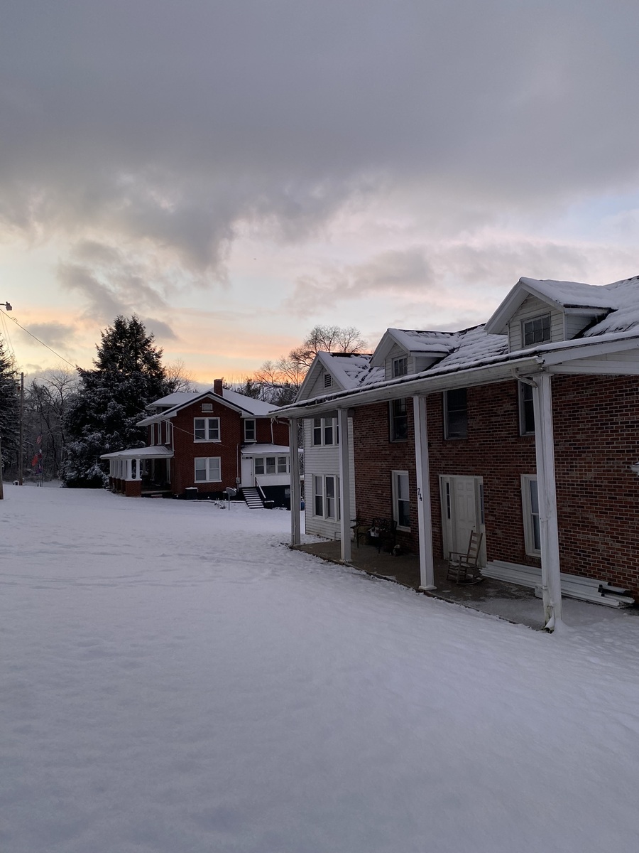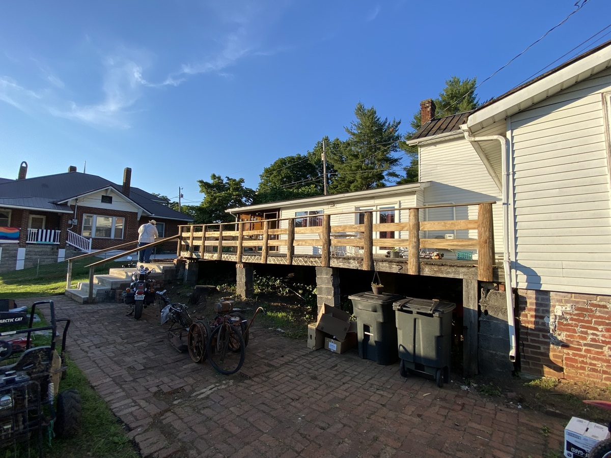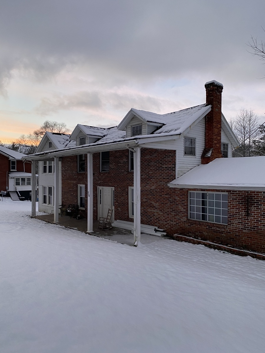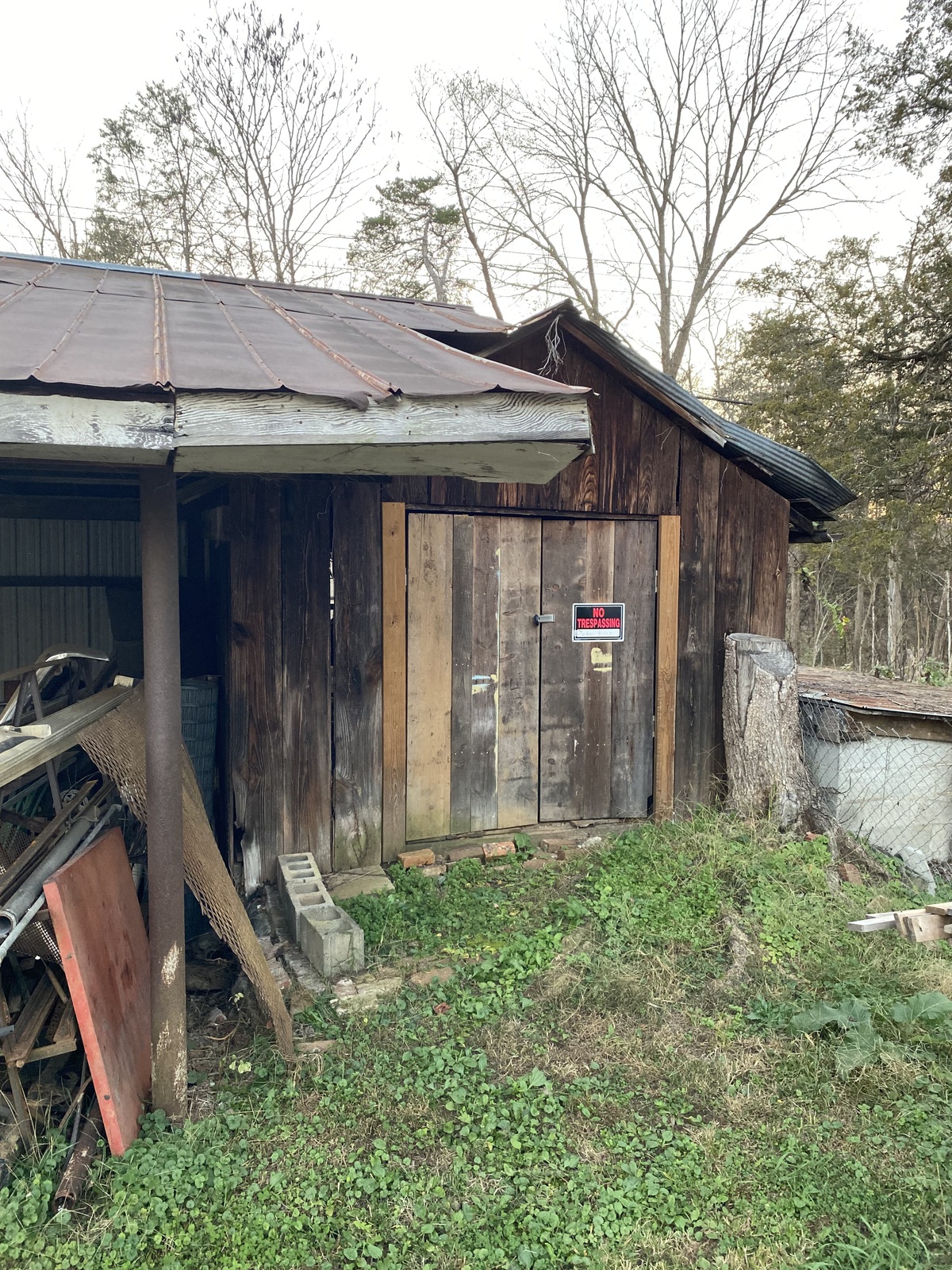 The majority of the property is located at the back of the house. Currently, we have a significant amount of equipment and vehicles on-site due to our businesses. However, when the property is sold, everything will be removed and the area will be cleaned up. The property features a gravel driveway, double gates, a pole barn, a two-story shed (one accessible from the road), and a metal shed.